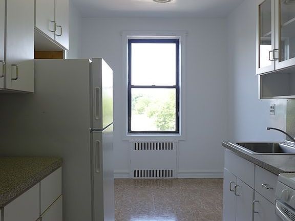 Bright, Quiet Pre-War 1 Bed w/EIK near Brooklyn College $2000 Broker Fee Rare 1 bedroom with Eat In Kitchen on the 4th floor of a pre-war elevator building with live-in super and laundry room, close to the Q at Avenue J. The apartment faces the rear of the building so there's no street noise at all, and it overlooks homes/backyards of the neighborhood. The living room is about 12 x 20 with inlaid hardwood floors, there is a nice sized entry foyer with a coat closet and built-in shelves which opens to the EIK with wood cabinets and white appliances, with a large tiled dining area. There is a linen closet + 2nd closet outside the full bathroom, and the bedroom is about 12 x 16 with another closet as well. *these pics of the same apartment on a different floor, so finishes of kitchen/bath will be either same or nicer* The building is a classic pre-war elevator building with spectacular terrazzo lobby, excellent live-in super and laundry room, about a 5 minute walk to the Q at Avenue J, or a 10 minute walk to the B/Q at Newkirk. Up to 2 cats ok, but sorry, no dogs. Guarantors earning 80x rent with excellent credit accepted.
