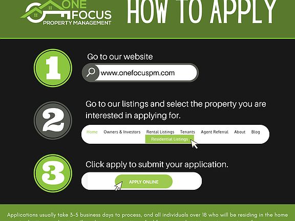 Do not submit any application for this home with or pay any fees or deposits to any party other than One Focus Property Management.