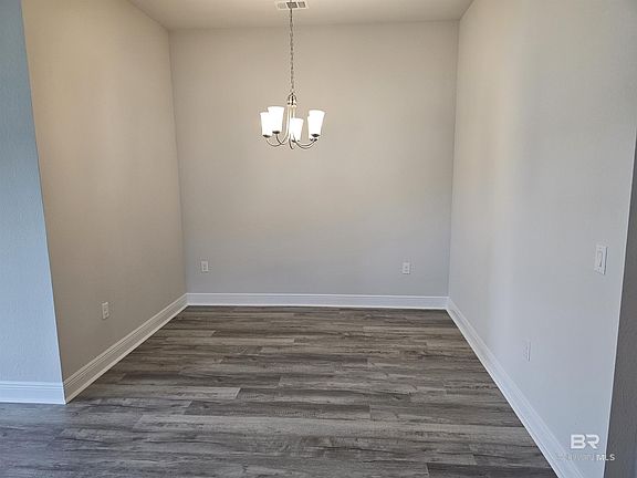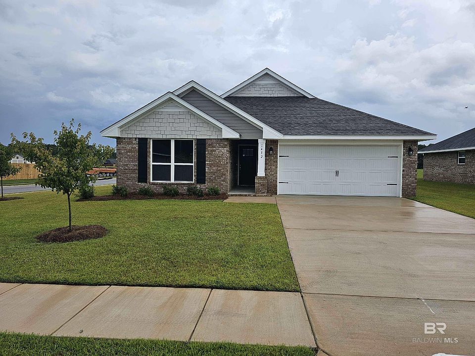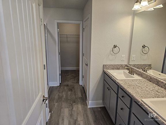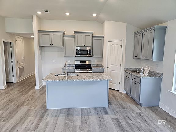 Beautiful Beaches are in your near future just 20 minutes away. Move in Ready! This home is located in the center of Foley, with shopping, entertainment, and easy 2-minute access to the beach express or Hwy 59. This Four-sided brick house has a split floor plan. It features 10 ft ceilings in a very open concept living room, dining, and kitchen with a lovely island and granite countertops and stainless-steel appliances with a large corner pantry. The Primary bedroom at the back of the house is spacious with an ensuite bathroom featuring double sinks, a separate shower and tub, and a huge walk-in closet. Two guest bedrooms are at the front of the house with their own bathroom and linen closet. Luxury vinyl plank flooring throughout with carpet in the bedrooms. The seller also provides Termite protection with a renewable bond. Premium hurricane fabric shields. Digital multimedia box. Buyer to verify all information during due diligence.