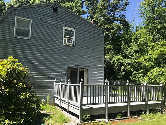 With a little sweat equity this home can shine again! 3 bedrooms with a master and a full bath and walk in closet on the 2nd floor. Front to back living room with hardwood flooring opens up to the large deck and private side/back yard. The dining room is being used as a bedroom. The kitchen is fully functional. The roof is only 2-3 years young and the hot water heater has been put in within the last few months. Serviced by town sewer with a well for water. With over an acre of land, a little pond in the front it makes it private and lush with greenery. The basement was once a garage, it was turned into more livable space with another full bath.