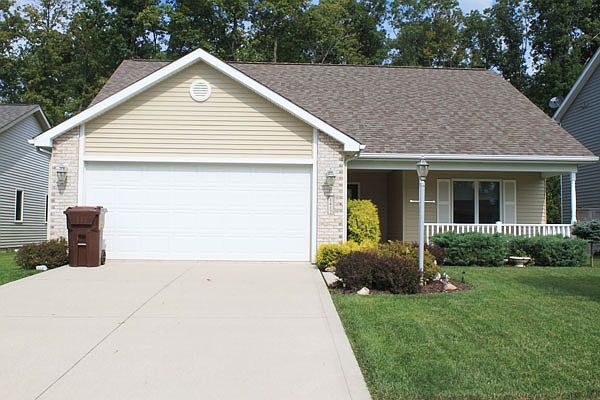 Absolutely immaculate 2 bed/2 full bath ranch home. Perfect location with a backyard that backs up to trees. This lovingly cared for home has an inviting entry with a cute front porch. The spacious entry looks into a great room with cathedral ceilings. The open floor plan of this home makes it easy to entertain and provides comfortable living. The eat-in kitchen has plenty of cabinetry and counter space/breakfast bar. All kitchen appliances come with the home. Spacious laundry room that comes with a 3 year old washer/dryer set. Master suite has a large walk-in closet. Don't wait to schedule your showing on this "like new" home!