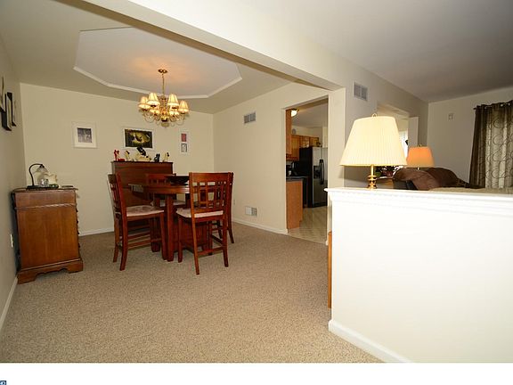 Ready to go for you, complete with a finished basement, speakers ready for your media room. Winning features all around - end unit with a garage, popular school district, move in condition, finished basement, deck, gas fireplace, generous closet space, and 2nd floor laundry. Ground level first floor offering entrance from the garage or front porch to a hardwood floor 2 story foyer (guest closet) with an open floor plan of the living room, dining room, and eat in kitchen. The living room has sliders to the deck, with a gas marble fireplace and mantel, accent lighting, and carpeting. The kitchen also offers access to the deck with generous counter space, and oak cabinetry which is expanded by the pantry. vinyl flooring for easy cleaning, and everyone favorite gas cooking. Microwave, dishwasher, and frig wrap up the appliances. The dining room features an accent ceiling, chandelier, and carpeting. A powder room (pedestal sink, new toilet) finishes off the main floor. Second floor has a master bedroom, walk in closet, ceiling fan, cathedral ceiling, carpeting, and full bath, soaking tub, shower stall, double bowl vanity, vinyl floor and new toilet. Two additional bedrooms, closets, ceiling fans, carpeting are served by a hall bath, shower/tub combination, vinyl floor, vanity, new toilet, exhaust fan. The laundry is on the second floor, so you don't have to carry baskets up and down the stairs. The lower level is finished with speakers and sound control wall finish, plus a bar for the complete entertainment space, recessed lighting, and carpeting. A multi purpose area! Storage room also. Gas heat, central air, whole house humidifier. Automatic garage door opener, Alarm system not monitored. Association fee covers roof and siding/shutters, all yard/lawn care, snow removal including driveways, trash. Possible 100% USDA financing. 06/07/17