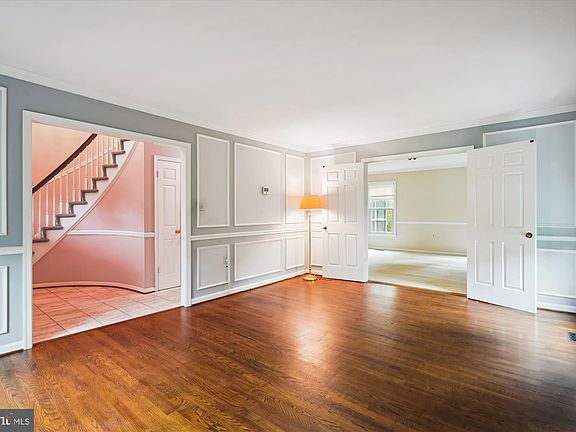 OPEN SUNDAY OCTOBER 6 , Noon - 3PM....Spacious 4 bedroom brick front colonial on a spectacular lot backing to county parkland....Gracious 2 story entry foyer....Living room to the right of the entrance with hardwood floors and wainscotting....Doors in the back of the living room open to the family room which has been freshly painted. Brick front fireplace wood burning fireplace in the family room with a firewood alcove. Hardwoods beneath the carpet....Family room is off the freshly painted kitchen....Kitchen has separate breakfast room and plenty of counter space. Also, plenty of storage with 3 pantries....Separate formal dining room with hardwood floors....The main floor also has a large office with hardwood floors. This room could easily become a main floor bedroom. Behind the office is a large laundry area and a separate shower. Plenty of space here to have both a laundry area and a full bath.....Crown molding in the living room, dining room and family room....Upper level has 4 bedrooms and 2 full baths....Primary bedroom has 2 double closets and a linen closet....Full bath off the main bedroom with 2 vanities....Walk out basement currently unfinished and ready for your design ideas....Screened porch off the breakfast room with a vaulted ceiling, skylights and a ceiling fan....Huge fenced rear yard backs to trees - county parkland....2 car garage. Pull down stairs in the garage ceiling....Ramp from the garage into the main level office. (Can be removed upon request.) Also grab bars in the main level half bath, the main level shower and the upper level hall bath....HVAC 2014. Newer water heater...2nd refrigerator in the laundry area conveys