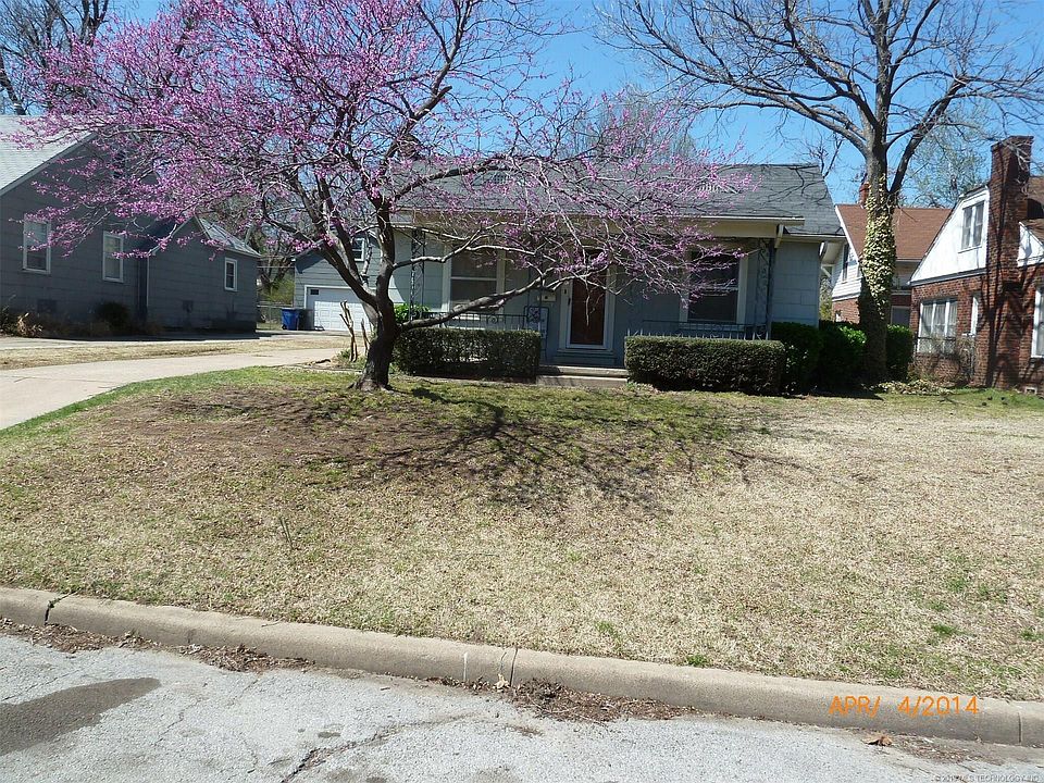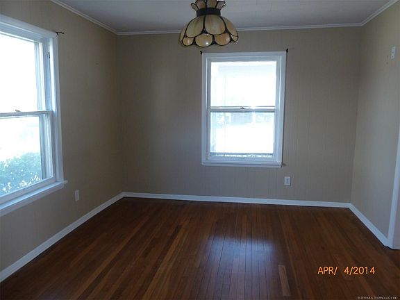 detached garage with opener, living room has ornamental fireplace, separate dining area, both bedrooms have ceiling fans, inside utility room, mature trees, fenced backyard
