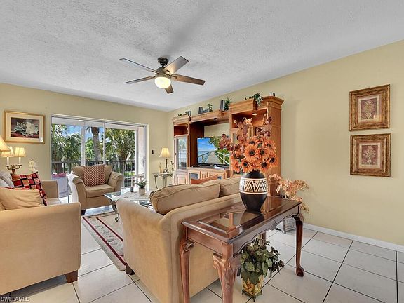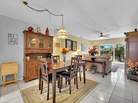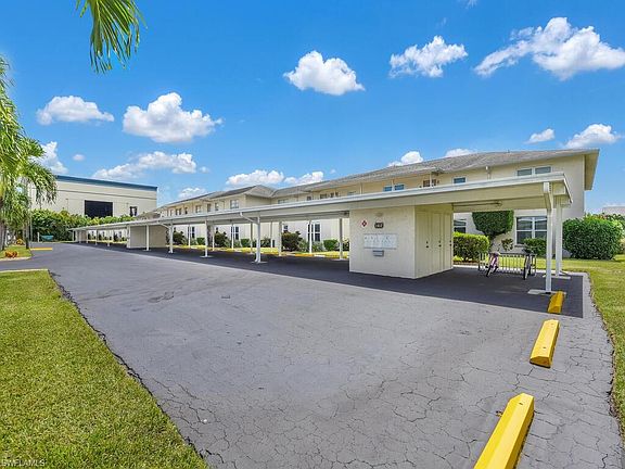 Your dream has an address and is now available to call home! This spacious, turnkey, 55+, 2 bed and 2 bath second floor condo in the heart of Cape Coral Gulf access waterfront condo/boating community will not last long! Straight through the entryway, you are welcomed into the dining area with the kitchen off to the left. The kitchen is ample in size with character and flare. Further into the home is the living/media area with enough space to entertain! The balcony is the real showstopper of this unit with canal and dock views which lead to direct gulf access for boat lovers. The primary is large with plentiful closet space, vanity, and sliding door out to the balcony. The remaining bedroom is also large with plentiful space for your out of town guests. Step in from your private balcony staircase after spending the late afternoon in the pool or after an adventurous day exploring the waters of Southwest Florida. Peace of mind is added with a brand new electrical panel, hurricane shutters wrapped around the balcony, one carport space, laundry in residence, and low HOA fees! The best of SWFL has to offer is at your fingertips!