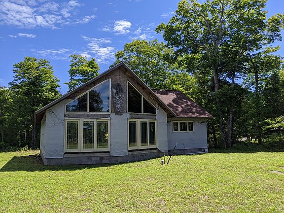 Spectacular Lake Michigan & Hiawatha forest views and an opportunity to finish and customize this 1500 sq. ft prow-design home. A full dry basement adds approx. another 1200 sq. feet that can be finished off. Currently, the home is framed in, roofed, and has custom Pella windows with insert blinds. It features a massive vaulted ceiling, lg. 3 section door-wall out to a future deck. There are 2 main floor bedrooms and a loft area (for possible 3rd or office with a view, full bsmt with a poured cement floor storage area. The well is in. The dual septic tanks are purchased, just need placement and setup. Featuring a storage shed and a spot to put your RV while finishing. Minutes to historic St. Ignace area, 3 Great Lakes, Mackinac Island, Silver Mt. recreation+. Back-lot available.