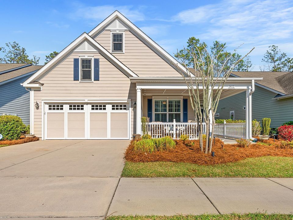 The lifestyle you've been waiting for is about to become a reality. Welcome to Cresswind in Market Common. Born from a love of the great outdoors, this nature-rich community will be home to inviting streetscapes, manicured landscaping, meandering walking trails and greenpocket parks. Cresswind is specially designed to provide an inspired lifestyle for active adults. This home is situated on one of the best lots in Cresswing, ensuring ulitmate privacy in the back as well as proximity to the nature walking trails. As you arrive at this address, you'll be greeted by a meticulously landscaped front yard and large front porch, setting the tone for what awaits inside. Step through the front door into a spacious and inviting foyer that leads seamlessly into the main living areas. This immaculate home boasts 3 bedrooms and 2 bathrooms, offering ample space for residents and guests. The primary suite is a true retreat, featuring  details such as a tray ceiling, and ensuite bathroom with a beautiful walk-in shower and walk-in closet, providing a peaceful sanctuary to unwind after a day of enjoying all that Myrtle Beach has to offer. The heart of the home is undoubtedly the open-concept living room, dining area, and kitchen. Flooded with natural light, this space is perfect for entertaining or simply relaxing with loved ones. The kitchen is a chef's dream, equipped with modern appliances including double wall ovens, ample counter space, beautiful backsplash and granite countertops as well as plenty of storage for all your culinary needs. Step outside onto the back patio, where you'll find a private oasis awaiting you. Whether you're sipping your morning coffee or hosting a summer barbecue with friends, this outdoor space is sure to impress. Conveniently located in Myrtle Beach, residents of 1412 Suncrest Dr. enjoy easy access to a plethora of amenities. From pristine beaches and world-class golf courses to shopping, dining, and entertainment options, everything you need is right at your fingertips. Don't miss your chance to make this stunning property your own. Schedule your showing today and start living the coastal lifestyle you've always dreamed of at 1412 Suncrest Dr.
