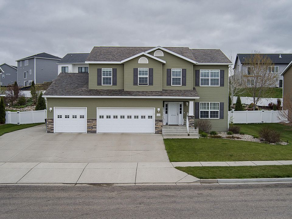 Boasting an array of beautiful features, this five bedroom, four bath offers inspiring spaces and an inviting backyard. The family room features a cozy electric fireplace and a comfortable flow right into the spacious kitchen with a crafty breakfast bar, staggered cabinets, stainless steel appliances and walk in pantry. Transcend the staircase to a master suite, 3 more bedrooms, laundry area and spacious living room all with brand new carpet. Lower level of the home continues with warm colors through the theater/family room and an additional bedroom featuring an egress window and large closet displaying ample storage throughout the home. Beyond the glass: an entertaining stamped concrete patio and a massive yard perfect for entertaining BBQ's, family gatherings or a quiet evening with a couple friends. The triple garage is insulated and equipped with water, floor drain and a heater. Other updates include freshly painted trim, radon mitigation system, new shingles in 2016, living room carpet 2020 and security system with TS Security. You'll appreciate the home being blocks away from restaurants, shops and grocery stores, and its close to schools, several parks and playgrounds.
