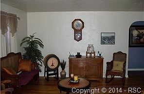 Stucco Exterior * 2 1/2 detached garage with newer roof * other room in features is 12 x 6 laundry with utility sink * hardwood floors on main level * woodburning stove in living room * ceiling fans (4) * All appliances stay * vinyl windows * spacious closets * covered front patio and large rear patio * Pikes Peak view *