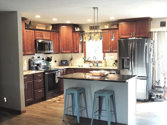 Quiet and Peaceful: describes this neighborhood. When you walk in this freshly updated split foyer style home, you walk up the steps into a new kitchen with everything a person would want. It has beautiful wood cabinets with soft close drawers and doors and beautiful granite tops. This kitchen was just completed about a year and a half ago. There is an island with white wood cabinets with an accenting color granite that serves as bar for your children or family to gather while preparing the evening meal! This is all on new laminate flooring that goes throughout the main level and down the hall and bathroom. Off the kitchen dining area, it opens to a large deck and down off the deck is a patio for grilling and new hot tub
