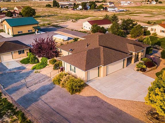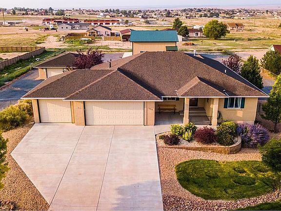 Immaculate, one owner, McGrath Construction, Pueblo West acreage home, with full, finished walk-out basement. Property features a 3 car attached garage, plus a 30 X 30 work shop and a 42 X 40 RV garage. The shop is heated & has 220 service. The RV garage is insulated & has one 14 foot & one 12 foot door, both pull throughs. Lots of built in cabinets stay in garages. The gourmet kitchen features beautiful maple cabinets with pull out drawers, granite counters and attractive backsplashes. Main level master suite has redone bath with large, tiled shower, double sinks & extra dressing vanity, & large walk-in closet. Dining room is huge and has attractive built-in storage cabinets! The basement is perfect for entertaining with cozy family room with gas log fireplace & bar area & adjoining that is large game room! Basement also has a 5th bedroom, a bath & hobby room, that could be 6th bedroom if needed. There's also a large unfinished storage room & a huge linen closet built in under the stairs. Outdoor living awaits on generous covered deck off main level with great mountain views or walk out from basement to protected covered patio area which looks out to beautifully landscaped courtyard! The entire lot is enclosed with chain link fence. The is a one of a kind property with a beautiful home and shops & garage areas that anyone who enjoys having larger toys would love to have! Very attractive landscaping front & back!