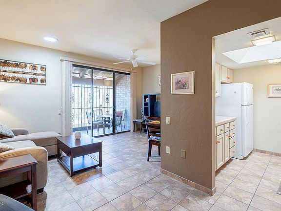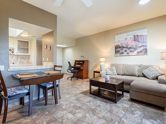 BEAUTIFUL CASITA WITH GOLF COURSE AND MOUNTAIN VIEWS. UPDATED KITCHEN AND BATH. BATH HAS WALK IN SHOWER, PEDESTAL SINK, AND LINEN CLOSET. KITCHEN HAS TILE COULTERTOPS TO COMPLIMENT THE FINISH ON THE CABINETS. ALL TILE FLOORS THROUGHOUT. CEILING FANS. FRONT SECURITY DOOR CREATES A SAFE FRONT PORCH FOR PETS. REAR PATIO IS ALSO HAS A STEEL SECURITY SCREEN WITH DOOR. FULL SIZE STACK WASHER AND DRYER. FURNITURE ON PREMISES CONVEY TO BUYER. THERE IS A SOFA BED IN THE GREAT ROOM