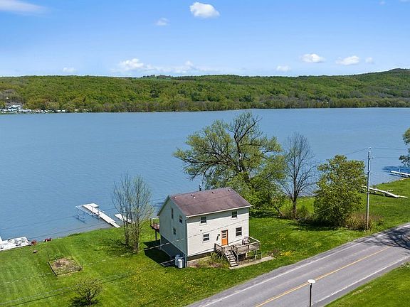 Stunning Otisco Lakefront Retreat! Welcome to your dream lake home! This meticulously maintained three-bedroom, two-bathroom residence offers 100 feet of private water frontage, perfect for enjoying tranquil views and outdoor activities all year long! The open concept design seamlessly integrates the kitchen, living, and dining areas, creating a spacious and inviting atmosphere. The heart of the home features a large kitchen with spacious island and a dedicated dining area that is ideal for entertaining and everyday meals. Adjacent to the kitchen and dining area is a large and spacious living room that boasts a cozy gas fireplace and a large picture window creating a warm and inviting atmosphere. This home is filled from top to bottom with custom wood and trim work. From the ceilings adorned with planks of butternut wood to the cherry cabinetry and the hickory floors, this home is a true gem.The main level living also includes a bedroom, currently used as a bunk room, and a spacious full bathroom that has a full size stackable washer and dryer. Heading upstairs the open staircase leads you to two additional bedrooms and a convenient jack and jill style half bath. As you head outside through the glass sliding door you are greeted by a large elevated deck. Here is where you can enjoy endless views and spectacular sunrises. The full walkout basement also provides possibilities for additional living space, making it easy to expand your square footage according to your needs. Located on a quiet street, this home also features convenient parking, ensuring a peaceful and accessible environment. Discover the perfect blend of comfort and relaxation. Don’t miss the opportunity to make this beautiful lakefront property your own!