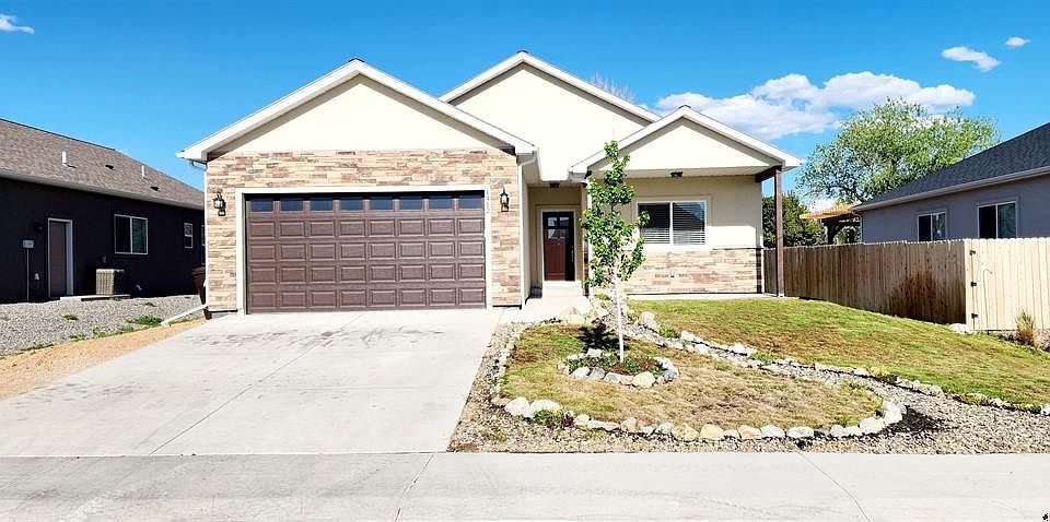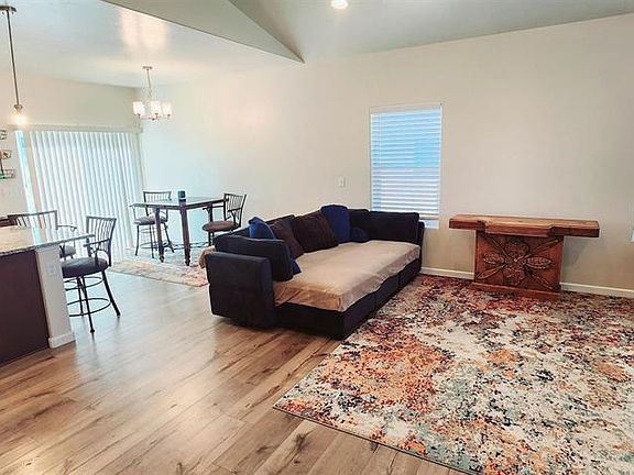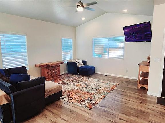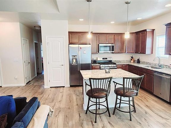 This 2 year old, Rocky Mountain Ridgeline Homes model in Bear Creek Subdivision is awaiting its new family. It has 3 bedrooms, 2 baths, an open concept living, dining and kitchen area with large kitchen island. Perfect for entertaining! There is an open space behind the property with Mountain views from the backyard. The landscaping and sprinkler system are already in place. Plus, there are Solar Panels on the roof which help save on the electric bill.