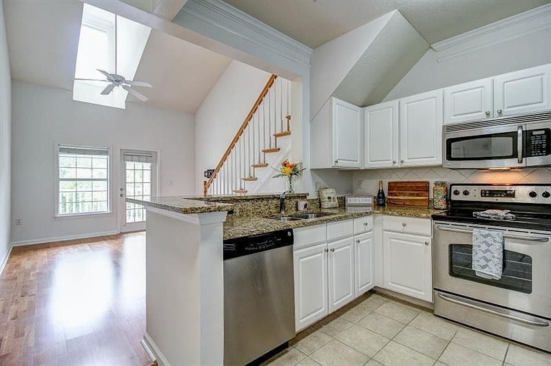 Sun-Soaked and Stunning Condo! RARE Large Floorplan with Bonus Loft Space. A Bright, White Kitchen with Stainless Steel Appliances, Granite Countertops, Breakfast Bar, and Pantry welcomes you inside. Hardwood Floors extend into a Spacious Family Room with Towering Two-Story Ceiling and Skylight. Upstairs, a Bonus Loft Space is prime for Home Office, Gym, or Additional Bedroom. Unwind in the plush Owner's Suite with Step-Out Deck and Custom Closet System. Step Outside and onto a Private Covered Deck with Picturesque Poolside View, ideal for outdoor entertaining. Fantastic Amenities include Dedicated Gated Parking, Resort-Style Pool, Tennis Courts, and Fitness Center. Ultra Convenient Locations with Dozens of Nearby Shops and Restaurants including Target, Walgreens, Sublime Doughnuts, Tin Roof Cantina, and more! Easy I-85 Access for quick commute.