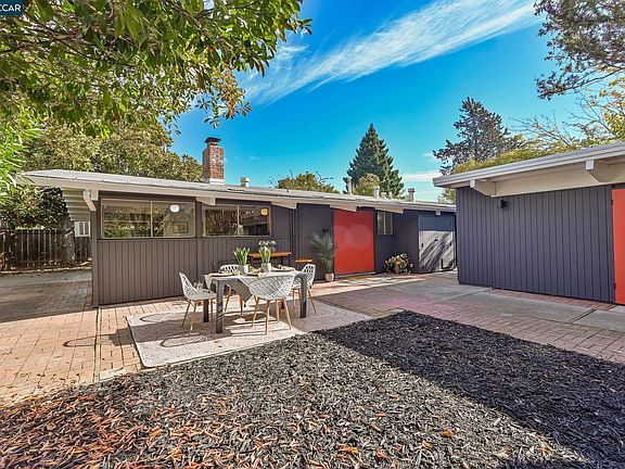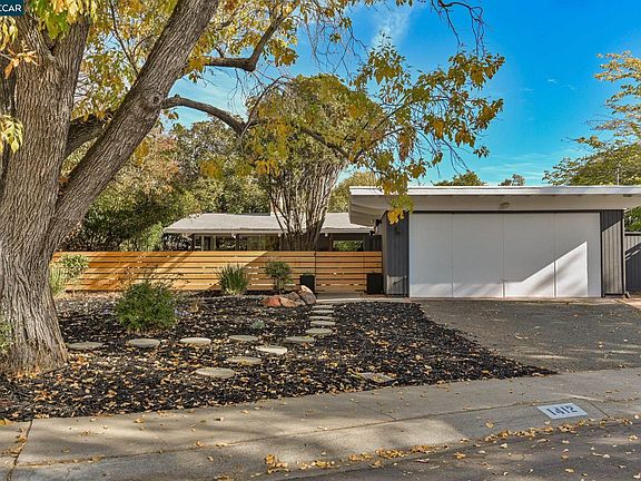 Sensational Single-Story, Eichleresque, Mid-Century Rancher!!! No matter how you label it this one will feel like home once you step through the entry gate to the expansive front yard & welcoming double-door entryway. Original features include walls of glass & corner windows, arabesque entry tile, globe light fixtures in kitchen, views from the front door directly to the backyard, fabulous vaulted wood ceilings throughout & a fantastic detached garage w/ corner windows & wood ceilings (shown as a great fun room w/ lots of storage & space for activities)! Modern horizontal fencing & entry gate; all new interior & exterior paint; all new luxury vinyl plank (LVP) flooring throughout; new pendant light fixtures & new ceiling fans w/ remote controls & LED lighting; new hall bath vanity w/ Quartz counter; new counter depth stainless refrigerator, stainless smooth surface electric range & stainless dishwasher! One bedroom is a great office set-up w/ views to the backyard, another is light-filled & spacious & the primary features corner windows, 2 wardrobe closets & an efficient ensuite bath. Court location! This home's original layout is welcoming & playful and translates perfectly to a modern lifestyle!