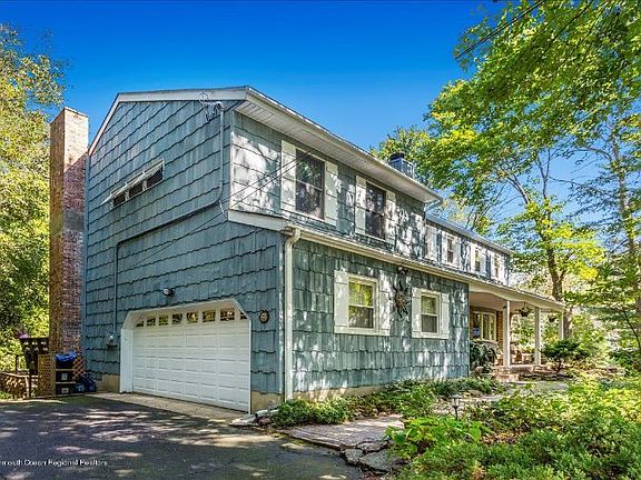 This beautiful colonial nestled in the woods, backs to Monmouth county park land set on little over half acre lot with 588 acres of park land behind the property. The home has 4 bedrooms can be used as 5 bedrooms with 3.5 baths hardwood floors through-out the home, large 32 x 16 pool, multi-level deck, very large master bedroom with gas fireplace, large master bath walk-in shower stall , new central air, and gas forced hot air Carrier systems. This home offers a finished basement with french double doors which opens to pool area. The home is approx. 2, 700 sq.ft. plus 640 sq.ft. finished basement. The Kitchen has stainless steel appliances tiled floor, and granite counters which opens to family room with gas fireplace, and glass sliding door to upper deck.