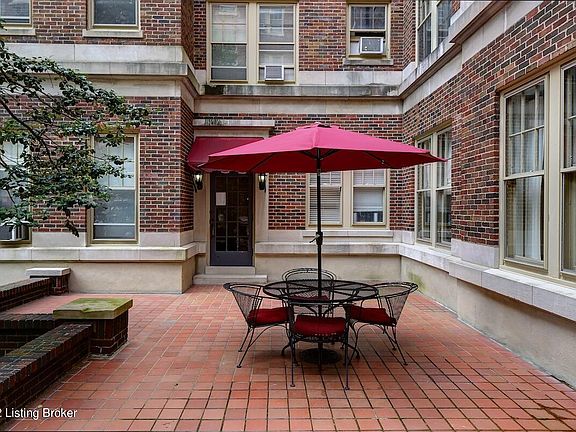 Gracious living on the top floor in the beautiful historic Willow Terrace. This stunning grand 2 bedroom 2-bath unit includes the original decorative domed ceiling in the living and dining rooms. Freshly painted, hardwood floors, decorative moldings, bookcases and decorative fireplace. The sunroom has original marble floors, which have been refurbished. A galley style kitchen has ample cabinets, pantry, a gas cooktop and original terrazzo floors. Additional features include central air conditioning, in-unit laundry and ample closet space! Superior 8th floor location provides plenty of natural light with views of downtown! Convenient location in the Cherokee Triangle just steps away from Willow Park, Bardstown Road shopping and restaurants. Building features include: additional storage, fitness room, off-street and garage parking, guest room, elevator and on-site 24/7 staff. HOA dues include: all utilities, cable, Internet, trash, snow removal, master insurance and maintenance. Immediate private garage parking available through owners.