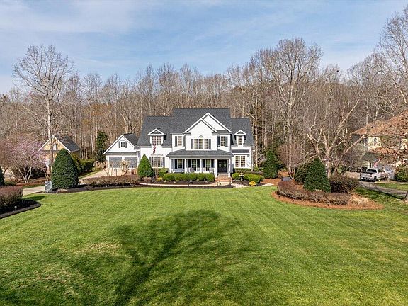 Welcome home to this stunning estate in Raleigh's highly desirable Laneridge Estates, built by Parade of Homes-winning builder Tripp Loyd. This exceptional home offers a meticulously designed living space across three levels, featuring four bedrooms and three and a half bathrooms. A thoughtfully designed first-floor in-law suite provides added convenience, while the expansive primary suite on the second floor boasts dual walk-in closets, a cozy fireplace, and a spa-like bath with a walk-in shower and whirlpool tub. Designed for both elegance and functionality, the home showcases beautiful hardwood floors, coffered and tray ceilings, crown molding, and built-in features throughout. The gourmet eat-in kitchen is a chef's dream, complete with granite countertops, a large island, stainless steel appliances, and a spacious pantry. Entertain guests in the formal dining room or relax in the inviting family room with a fireplace. Two large bonus rooms on the second and third floors provide endless possibilities for a home theater, game room, or additional living space. A true paradise for car enthusiasts, this property features an attached three-car garage plus a separate two-car garage equipped with a 7,000 lb car lift, providing ample space for vehicles, storage, or a workshop. Outside, enjoy .89 acres of beautifully landscaped grounds with a screened porch, a wraparound front porch, a spacious deck, and a patio, perfect for outdoor living. The home is packed with premium upgrades, including two top-of-the-line Bosch HVAC systems, a tankless water heater, and a security system. Conveniently located near 540, this estate offers the perfect blend of luxury, space, and convenience. Don't miss this incredible opportunity—schedule your private tour today!
