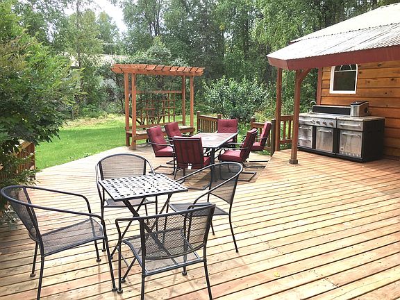 Beautiful, furnished retreat located in the fun-loving but quiet heart of East Downtown Talkeetna. Situated on a corner lot with a full acre, easy walking distance to all of the restaurants, bars, shops, and the elementary school. This uniquely Alaskan hideaway is a large and cozy. Comfortably furnished and comes with a host of amenities that make it a wonderful gathering place for entertaining and also a quiet, restful place to relax and reconnect with life's simple pleasures. The upstairs grand master suite is an entire retreat in itself. An enormous walk-through closet and master bathroom leads into a cathedral of vaulted ceilings in the incredible Master bedroom. Downstairs queen bedroom is centrally located with its own full bath right next door. The third bedroom is an excellent children's or guest space or a wonderful, well-lit office. The main floor has a sprawling, open-concept, kitchen/living room space. A beautiful double glass door leads into a warm, inviting sun room that serves as a gorgeous dining space that could easily be converted into another entertaining, sleeping or living space. Walk through the sun room onto a sprawling back deck with a full outdoor kitchen and stunning yard where flowers, berries and wildlife abound. Other features include: FULL LOG SAUNA, with separate changing space, relax and get your sauna on in the heart of winter while soft snow falls and the northern lights dance around the sky. Large two car garage, Ample covered storage space. More than enough to store boats, snow machines, lawn mowers and anything else you'd like to keep safe and sound out of the elements of winter. Lease is available October 1-May 1 and includes water and sewer. A minimum of 6 month lease. Electricity and fuel oil is billed separately. Well-behaved dogs with references considered. Non-smoking property. Private, off-street parking.