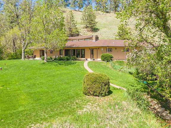 Battle Creek runs through! 1905 sq ft one level home on 12.26 acres. Amazing views of the creek and valley. Home features a beautiful rock fireplace, quartz counters, large master suite, sun room (26x9) with a hot tub, storage room/pantry, zero entry. Large concrete patio to enjoy the park like setting and views! Attached 2 car garage and a detached 24x40 garage/shop, 14x9 storage shed, garden area. Easy access on Hwy 40 just a couple miles west of Hermosa, less than 20 minutes to Rapid City, just minutes to Mt. Rushmore and Custer State Park.