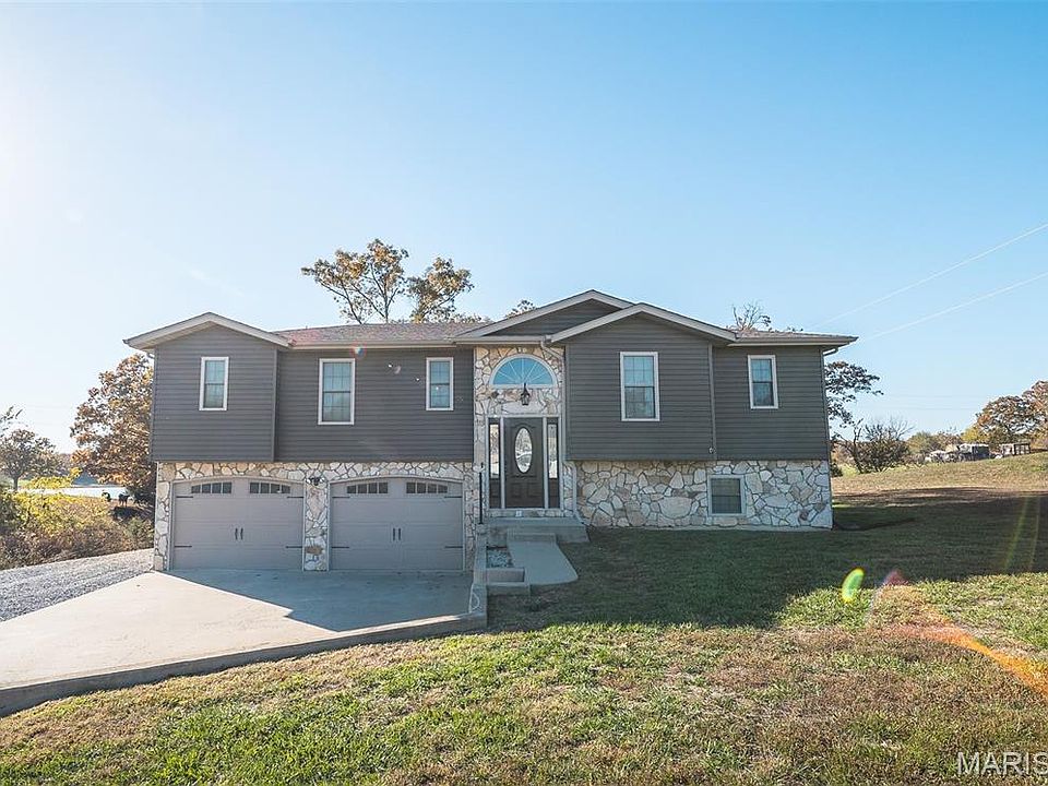 Beautiful 5-bedroom, 3-bath home nestled in the peaceful countryside on a spacious half-acre lot! Enjoy plenty of outdoor space with established garden beds and room to relax or entertain. Inside, you’ll find a thoughtfully designed split-level floor plan featuring luxury vinyl plank flooring throughout the main living areas and primary suite, with cozy carpet in the additional bedrooms. The kitchen is a true highlight with a walk-in pantry cleverly hidden behind a cabinet door—perfect for extra storage and style. The primary suite offers a spa-like retreat with dual sinks, a jacuzzi tub, and a separate shower. The lower level includes two additional bedrooms and a full bath. Conveniently located just 5 minutes from the Fort Leonard Wood South Gate, this home offers the perfect blend of country charm and close-to-town convenience!