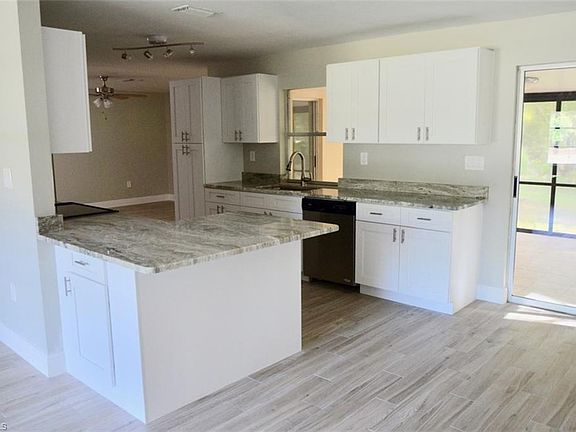Don't miss the opportunity to own this completely renovated ranch style home, located in the sought after Buckingham community of Fort Myers. This four bedroom two bath sits on just under an acre lot with a beautiful creek that runs along the rear and east side of the property. While maintaining some of the quaint country appeal with the original brick siding accents on the exterior of the home, the interior has been completely updated. Throughout the living areas is new plank, wood-like tile and new carpet in all of the bedrooms. The stunning kitchen has white shaker style cabinets, gorgeous granite countertops, stainless steel appliances, pass through window to lanai, and a wrap around island that can be used as a breakfast bar. Both the master and guest bath have new vanities, mirrors, fixtures, and lighting. The master bath walk-n shower has all new tile and the guest bath has new tub and wall tile. The spacious master bedroom renovation included expanding the size of room to include a larger walk-in closet and more accommodating bath. Other upgraded/ renovations include: all new doors and trim and updated electrical panel. Contact your agent today to schedule a showing!