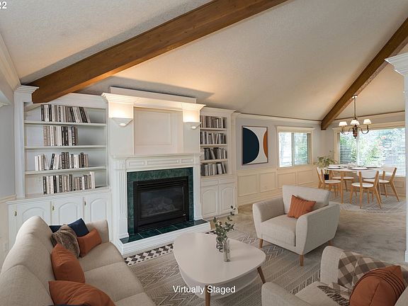 - Features: Bookcases, Builtin Features, Fireplace, Formal, Vaulted Ceiling, Wallto Wall Carpet