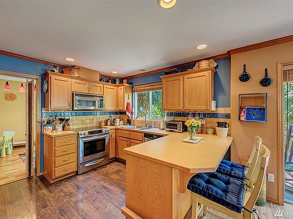 Light & bright 3 bedroom, 2.5 bath home on a quiet cul-de-sac. Vaulted ceilings greet you upon entry. Gorgeous pear-wood floors in living room. SS appliances, custom tile back-splash and large eating area open into the family room. Flour and vine covered deck overlooks a greenbelt. Master closet has been updated as has the master bath and rainmaker shower-head. soaking tub and dual sinks, Attached 2 car garage with loads of storage. Close to shops Mill Creek schools, and parks. Don't miss it!
