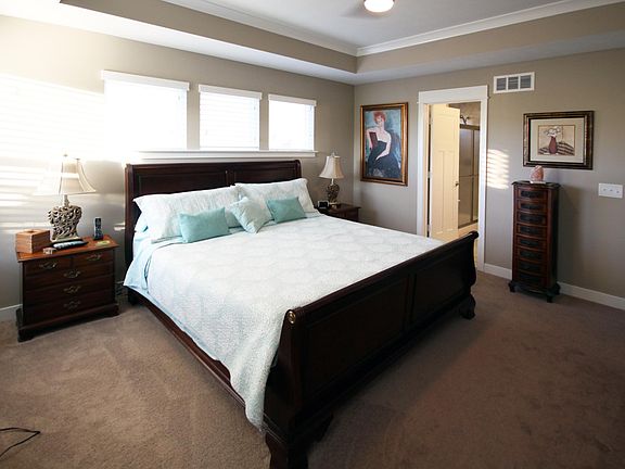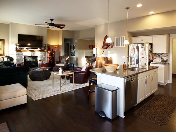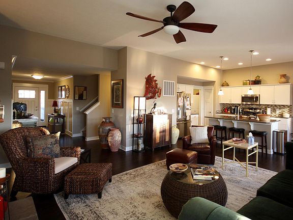 Large kitchen open to living room w/gas fireplace, large master suite w/walk in hand railed shower, open loft w/full bath, finished basement w/full bath, perfect ranch plan on main, full of light, fenced back yard w/custom stone patio & covered atrium w/moving awning, irrigation system, ceiling fans, bird-lovers wildlife area, hand rails in garage/back patio, generous storage space in unfinished basement, professional landscaping. Available immediately. Agent to Agent: $2,600 Deposit Required, $100 application non refundable fee. Sentrilock front door. Pets negotiable.