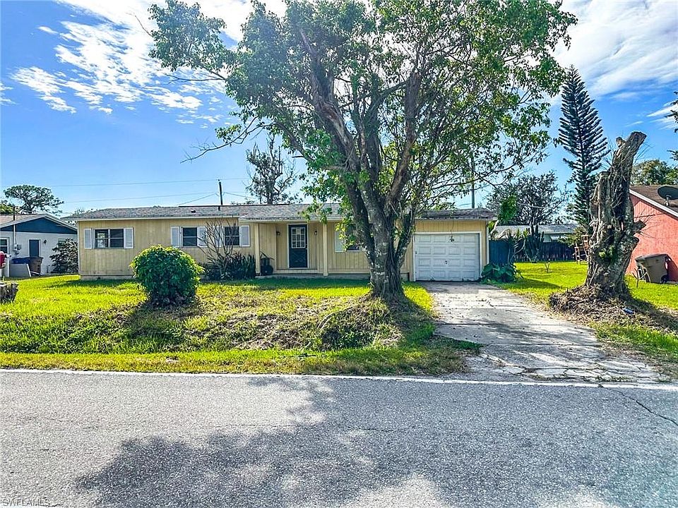 Welcome to Fort Myers Shores where you can build your dream home or create a rental investment property. This home features 4 bedrooms, 2 bathrooms, and an attached garage. Situated on a large lot and room for a pool. Use your imagination can create a special home in paradise in Southwest Florida.