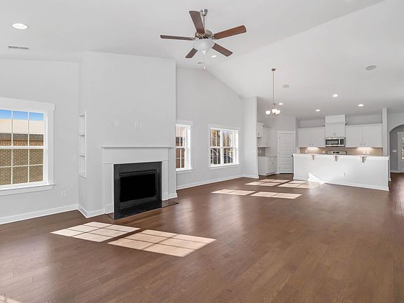 $10K Buyer's Choice Incentive for Rate Buy-Down or Closing Costs. The Dalton plan, featuring 4 beds / 2 baths, includes Great room w/ vaulted ceiling, gas fireplace & wood floors open to kitchen & dining area. Kitchen offers an island w/ quartz counters, ss appliances & corner pantry. The main floor Owner’s suite has vaulted ceiling, walk in closet & luxury bath w/ dual vanity, garden tub & separate tiled shower. Flex space w/ French doors makes a great office or formal dining room. Upstairs is a large 4th bedroom or bonus space w/ walk-in closet. Only 3 miles from Clift Farm, shopping, restaurants, hospital & more.