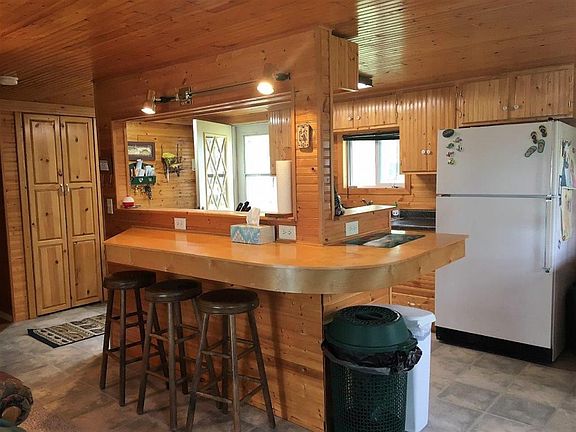 Check out this gorgeous lot with 150' of amazing beach! Mfg home has many updates! Interior finished w/knotty pine, updated kitchen & bath, wood stove & elec heat. 30x50 shed built 2009; fully insulated & heated (electric floor heat & gas furnace)is partially finished w/2 bedrooms w/lofts & 3/4 bath. Very nice! Remaining shop space. Includes docks & 2 small storage sheds & sauna.