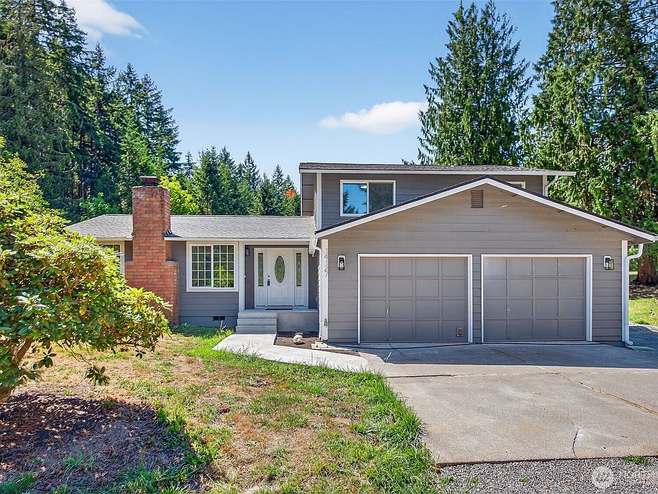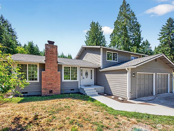 Yelm – 5.78 Acres – Discover this freshly, updated home, offering both privacy and modern comfort. Inside, you’ll find freshly painted interior, new vinyl plank flooring & plush carpet throughout. The living room features a cozy wood burning fireplace as its centerpiece, perfect for gathering. The kitchen and bathrooms have been upgraded with stunning quartz countertops, new hardware on cabinets & stainless steel appliances in the kitchen. Light fixtures and railings have been tastefully updated, adding a modern touch to the space. Enjoy outdoor living on the newer deck, overlooking the expansive property. Move-in ready and perfectly situated, this property blends rural charm with fresh, stylish upgrades.