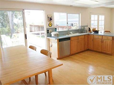 Spacious, Split 4-Level Home on Tranquil Cul-de-Sac. Easterly Mountain View yields Sun-drenched mornings on Lrg. Deck and through a wall of windows spanning Kitchen and Dining Rm. Beautiful, Maple Hardwood Flooring and Cabinetry, Dual Master Suites, every bedroom with balcony and wired Internet, Living Rm with Vaulted ceiling, Multiple Skylights, Lower Fam Rm Theatre has Fireplace and Surround Sound. Walk-in closets, 3.5 Baths, Soak Tub, New paint. Walk to Great Elem. Schools, Shops, Crest Canyon Park. Brokered And Advertised By: InfoSanDiego. Listing Agent: Jim Prechtl
