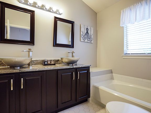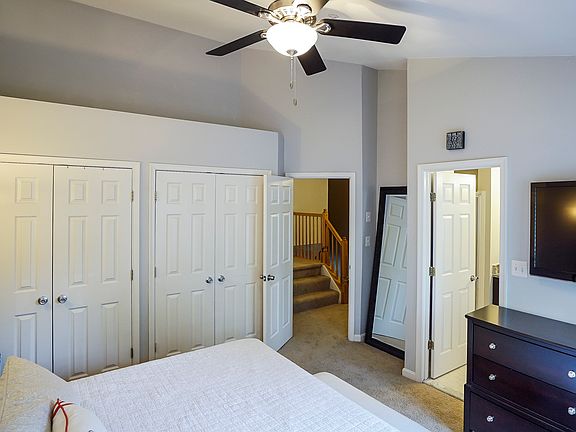 Available immediately! Backs to thick woods for incredible privacy. Soaring vaulted ceilings and wall of windows on main level bring in the sun! Walkout lower level is finished w/ gas fireplace. Owners BR has vaulted ceilings, fan en suite bathroom with soaking tub, designer vanity sep. shower. Fantastic location close to everything (schools, shopping, restaurants) and more!
