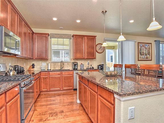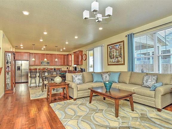 Beautiful 2-story in Thornton's desirable Lewis Pointe. This gorgeous Rockford model by Lennar welcomes you home with a fantastic front porch, stunning foyer & extended hardwood floors. Enjoy the spacious family room with gas fireplace and a lovely open concept kitchen with granite counters, tile backsplash, center island, SS appliances & pantry. The main level also includes an office/flex space with lots of natural light. The upper level boasts a loft plus 4 bedrooms including a master bedroom with tray ceiling & 5-pc master bath, a secondary bedroom with private full bath & 2 additional bedrooms sharing a full-sized Jack N Jill bath. The unfinished basement with rough-in plumbing is ready for future expansion! Enjoy entertaining outdoors with a covered deck, fully landscaped yard & a storage shed. Primely situated close to I-25 for easy commutes to Denver and Boulder and close to parks, open space, walking trails, multiple outdoor/recreational amenities and retail and dining options.