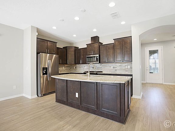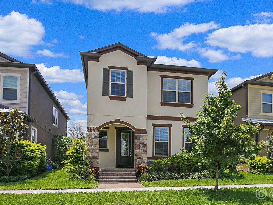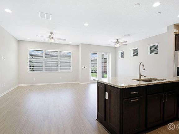 Available: 2025-04-01 - This gorgeous 4 bedrooms 2.5 bath home wows throughout! From the open concept floor plan to the tasteful finishes, no detail has been overlooked. The downstairs area has plank-like laminate flooring while upstairs you'll find plush carpet both in a neutral tone giving the home an updated feel. Off the foyer, the downstairs bedroom makes the perfect office or guest retreat. Continue to the rear of the home where you will find the spacious kitchen and living areas. The well-designed kitchen features an over-sized prep-island with a single bowl sink, granite counters, stainless steel appliances, and espresso cabinets. Through the French doors off the living room, access the home's covered paver lanai and detached garage. Upstairs, the home's master suite, remaining bedrooms and bathrooms, and laundry room are located just off the loft, which would make a perfect media or game room.