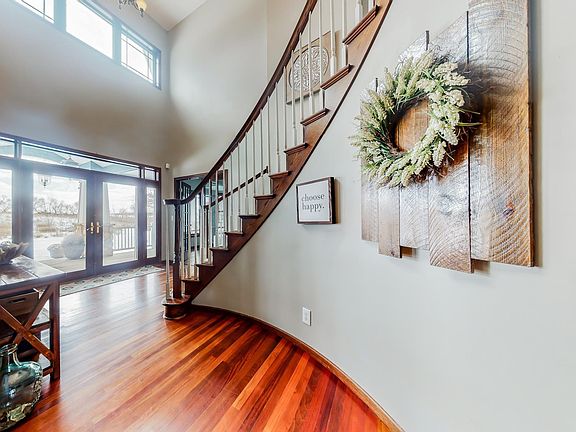 Beautifully updated 2 story custom built home on 38 acres. Private country views in every direction. Conveniently located between Cannon Falls & Red Wing. Professional landscaping includes water features. You will love the grand entrance with two story vaulted ceilings and curved stair case leading into the living room with stone 2 sided fireplace and large windows overlooking the wooded back yard. Great spaces for entertaining. Home also features main floor office with high speed fiber internet. Large main level owners suite with bath including jetted tub and sauna shower. Enjoy backyard views from the 16'x44' maintenance free deck. Basement family room walks out to back patio space which is covered by the deck and gutter system. Quiet setting with a lot of wildlife! Bring your horses, chickens, goats, sheep, or cattle...property is already fenced and has two outbuildings. Great setting for enjoying your snowmobile, 4 wheelers or dirt bikes! There is space for more buildings.