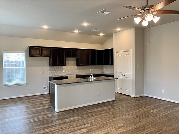 Stunning 1 one story home! Vinyl plank flooring throughout w/carpet in bedrooms only and tile floor in Primary bath. Open floor with oversized island kitchen and breakfast open to a family room with lots of windows, fabulous kitchen with custom backsplash, undermount sink, stainless steel appliances, pantry and breakfast area with access to the covered patio. Master suite with vaulted ceiling, master bath with double sinks, tub and separate shower and big walk-in closet. Secondary bedrooms feature walk-in closets. Super low Tax Rate! Conveniently located off Hwy 105 & Waukegan rd. just 20 minutes from I45!
