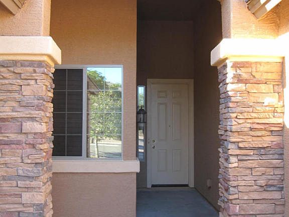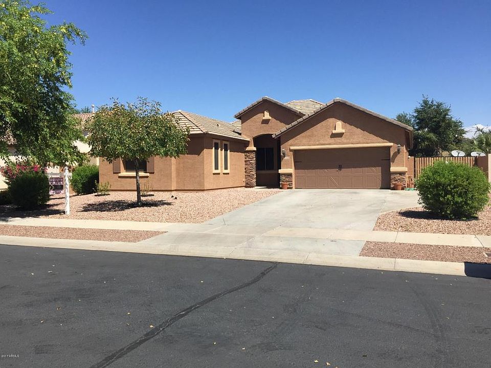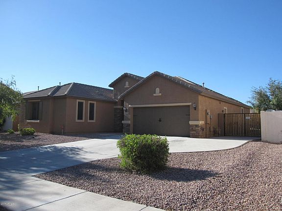 Located in the Community of Veramonte with easy access to the 303 Loop. This house is specifically upgraded for the Buyer that wants QUALITY. There is an extra large bedroom added giving a total of 5 bedrooms. Home was recently painted outside (w/7yr warr.)colored to emphasize an attractive setting. Extended length driveway with RV Gate and concrete driveway addition. Exceptional heated pebble tec pool and connected spa, w/water fall, slide and grotto. Professional landscaping and grassy back yard and landscaping water system upgraded to pbc high pressure (w/6yr warr.) Many upgrades including granite kitchen counters and island, all stainless steel appliances sink, storage in garage, split floor plan, wood shutters and blinds. Wired for surround sound & fans.