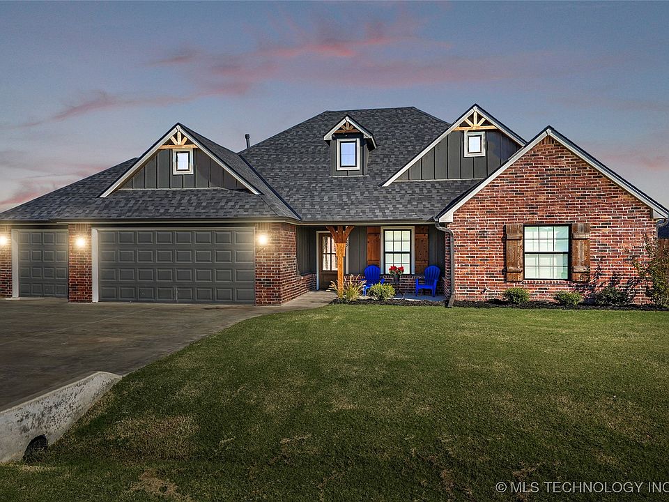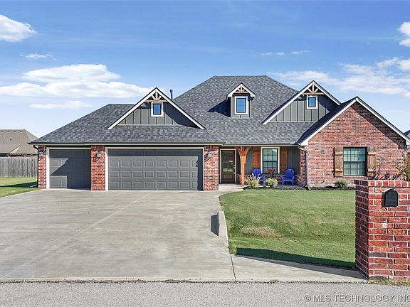 The primary suite feels like a private retreat with its tray ceiling, spa-like bathroom featuring dual granite vanities, a relaxing soaking tub, and a separate shower. Need more space? There are three additional bedrooms ready for guests, a home office, or your favorite hobby. Step outside to the private patio and enjoy evening BBQs or peaceful mornings overlooking your oversized, privacy-fenced backyard, with plenty of room to add a pool, garden, or play area. Car lovers will appreciate the 3-car garage, offering extra room for tools, toys, or storage. Located in the Collinsville School District with quick access to Hwy 75, this home combines small-town charm with convenient commutes to Owasso, Tulsa, and Bartlesville.