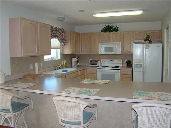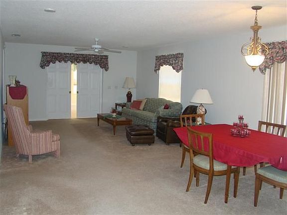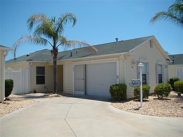 NO BOND on this 2/2 + family room Marathon courtyard villa in the Villas Escandido in Village of Santiago. The open floor plan and back family room create a feeling of spaciousness. The kitchen has been remodeled with beautiful granite counters with backsplash, island with granite, and new LG appliances. The cabinets have pull outs and crown molding. Beautiful ceramic tile floor matches the backsplash. The dining room has sliding door out to courtyard and has Verticell blinds. The living room is spacious and the family room has pocket doors so you can close it off. It also has sliding door out to courtyard with Verticell blinds. No maintenance stone in courtyard so you have more time to enjoy the Villages lifestyle. The guest room is spacious and has a custom wall Murphy bed. The baths have solar tubes. Master bath has walk in shower. Both baths have updated toilets. The home has a built in music system. There is lots of storage in garage and a newer garage screen door. The front landscaping is new and is low maintenance. THE ROOF WAS REPLACED IN 2018, Some furniture may be available.