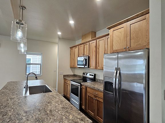 This unit spans 3 levels with an open kitchen and living space on the main level. Upstairs holds 2 bedrooms, 1 bath with a walk-in shower and the lower level features the family room, 1 bdrm and 1 bath. Washer/dryer are included, as well as lawn care, snow removal, water/sewer and garbage! Off street parking and patio are also a plus! Call the Dwelling Place for showing information. No pets or smoking.