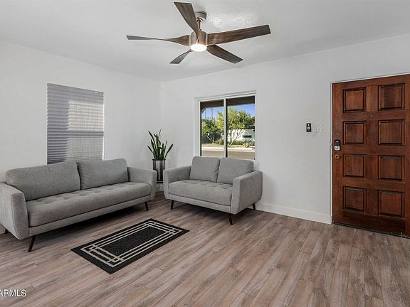 This gorgeous fully remodeled property is a rare find in Central Phoenix! There are 2 separate living spaces on this lot...the front house is a 2 bed 1 bath 832 sq ft open concept with light and bright design elements which include all new stainless steel appliances, cabinets, flooring, fixtures and high end finishes like the double waterfall marble kitchen island. The back house is a large 2 bed 2 bath unit with 1056 sq ft of living space. This unique unit has industrial design elements, an open floor plan, a large glass roll up door for indoor/outdoor living and entertaining. The property has been completely remodeled from top to bottom with no details overlooked which includes all new dual pane vinyl windows and a new rear A/C unit. .