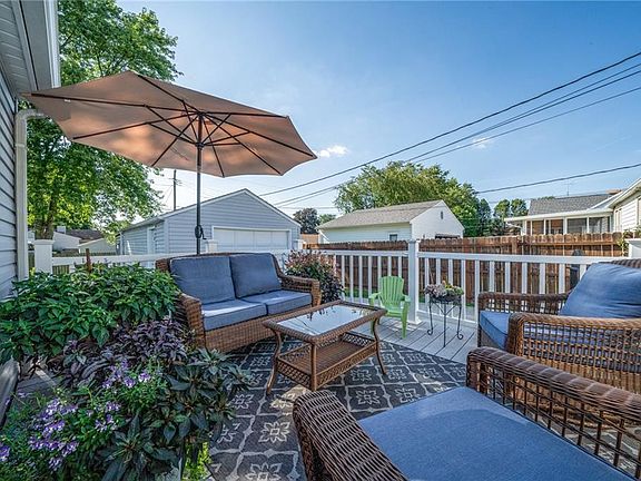 Ranch style , Cute as can be, so very well cared for, 3 bedrooms, master bedroom very spacious, Very nice kitchen with ample counter space and cabinets, formal dining room , very cozy living room just waiting for a new owner, Great yard, Private and maintenance free deck, patio, cemented driveway, nice basement, detached garage, shed. Roof, windows and vinyl siding aprox 7 to 9 years old. All sizes, ages and square feet estimated