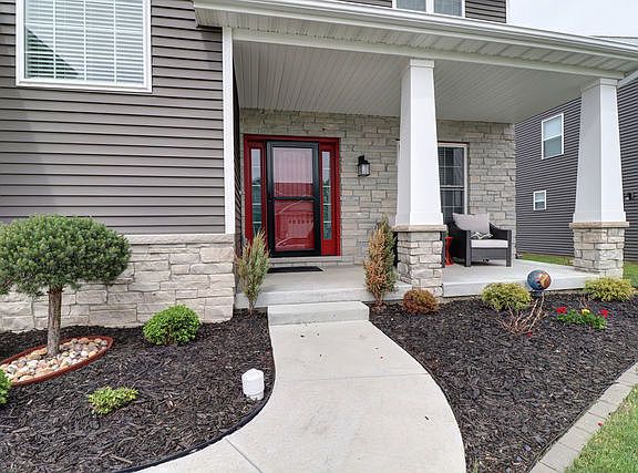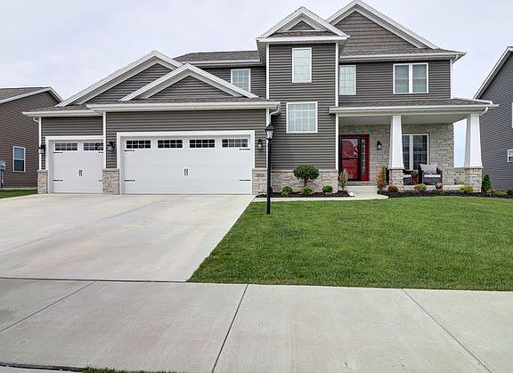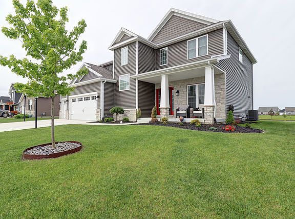 Welcome to this beautiful newer home in Fieldstone Subdivision built by Rave. This home offers lakefront views, beautiful sunset and upgrades for you to enjoy. Great curb appeal with a detailed exterior brick, stone and professional landscaping. Lots of light greets you as you enter this 5 bedroom, 3.5 bath that makes you feel like you are on vacation. Kitchen has abundance of light and counterspace with quartz, subway tile and custom cabinets. Upgraded stainless appliance package. Breakfast bar, separate table space and pantry closet. Living room upgraded with modern custom shelving to accent fireplace. Separate dining room gives this home a hint of a traditional floor plan. Recently updated powder room on first floor. Spacious bedrooms and laundry room upstairs. Finished basement offers an extra living space for movies, storage, 5th bedroom and a full bathroom. Mechanical room floor in basement and garage floor have Rustoleum coating. Backyard patio overlooks fully stocked pond!