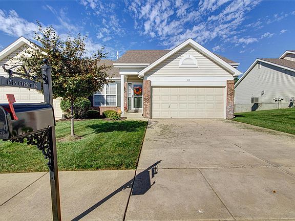 Enjoy the ease of villa living in this move-in-ready home in O'Fallon! Brick accents, great landscaping (included in your condo fees!) and a covered front porch greet you. Inside, the bright living room features gleaming laminate floors and newer paint that continue through the home. The kitchen has plenty of cabinet and counter space, plus a breakfast bar. It opens to the dining room with a slider leading to the covered, screened deck, a perfect place to have a cup of coffee or relax with friends. Down the hall is the primary bedroom with a walk-in closet, second bedroom, and large bathroom with a tub handrail. Convenient main-level laundry completes the space. The unfinished basement is just waiting for your finishing touches, with two egress windows. In a wonderful location, just moments from schools, parks, and highways, with easy access to all of the restaurants on Main Street, this home is one you won't want to miss! Location: End Unit, Ground Level, Suburban