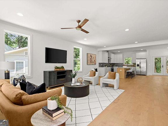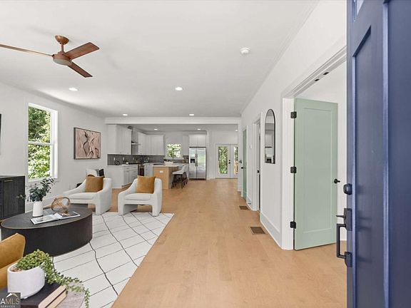 Fresh & light new construction by Intown Renewal Developers with designer touches by Carl Mattison Design, situated on a quiet street in Grove Park! Front porch welcomes to light-filled rooms, tall ceilings, custom trim, designer colors, tiles, finishes, and energy efficient construction. Kitchen w/stainless appliances - wide 4-seat island, quartz counters, fireclay sink, and plenty of storage in solid wood cabinetry. Primary suite w/trey ceiling, walk-in closet, spa bath w/dual vanity, oversized tile shower w/rain can & frameless enclosure. Spacious secondary bedrooms w/bed & bath on main - perfect for a home office. Hardwood flooring throughout, laundry room upstairs, rear deck overlooks wooded rear yard. 2-10 Warranty, termite bond, and alarm system included. Financing incentives w/preferred lender - qualifies for $0 down financing w/no mortgage insurance, no income requirements; see agent for details. Grove Park is a quiet and growing westside neighborhood, nearby Westside Reservoir Park - the city's largest park, featuring trails, playgrounds, green space, and located minutes away from interstates, Marta rail, restaurants, and more.