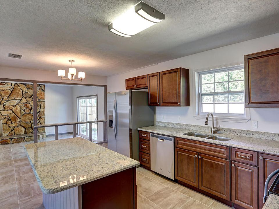 NEW ROOF COMING SOON! Love the smell of new! New double pane windows, New cabinets, New granite counter tops, New 20'' modern floor tile, New carpet, New sinks and vanities, New appliances, New light fixtures. 3BR, 2BA open floor plan brick home on a massive lot, almost a half acre in town! Brand new kitchen boasts granite countertops, large island with breakfast bar, real wood cabinets with turntable corner, stainless sink with commercial style center faucet, all new stainless appliances including side by side refrigerator with water & ice, flat top stove, microwave hood, dishwasher & disposal. Both bathrooms completely remodeled right down to the toilets. Master has gorgeous walk in tile shower. Additional bath has tile surround. And fresh paint everywhere! Privacy fenced back yard.
